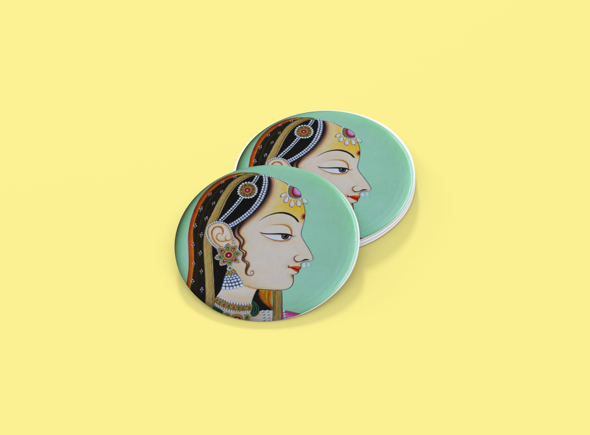 Exquisite Madhubani Queen Ceramic Coaster Set: Traditional Artistry for Your Home