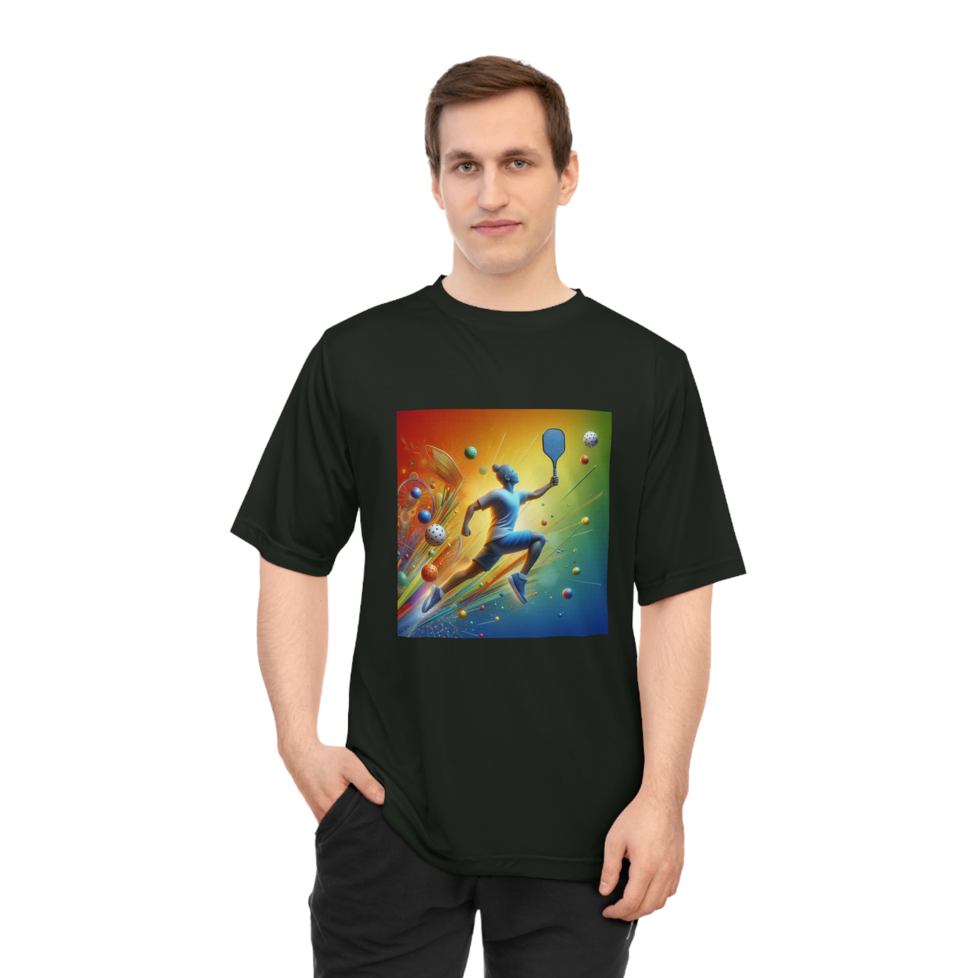 This pickleball-themed performance T-shirt is perfect for those who love the sport and value high-quality athletic wear. Made of 100% moisture-wicking polyester, this T-shirt keeps you cool and dry during any physical activity. With UPF 40+ sun protection, it's ideal for outdoor sports enthusiasts and those who enjoy staying active under the sun. The direct-to-film print adds a unique touch to the design, making it a great choice for pickleball lovers looking for stylish and functional activewear.