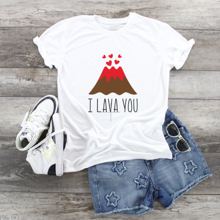 Crafted with the comfort of your little ones in mind, this T-shirt is perfect for playdates, family outings, or just lounging around. The heartwarming message adds a touch of sweetness to their everyday wear, making it a favorite in their wardrobe. Let your kids spread love and joy with the "I Lava You" T-shirt – shop now and make every day a little brighter!